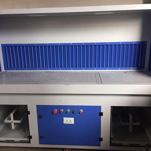打磨除尘设备工作台设有二次除尘。工作台上部设有送风口,侧部的下部有吸风口,完全按含粉尘气流运动自然规律运动。